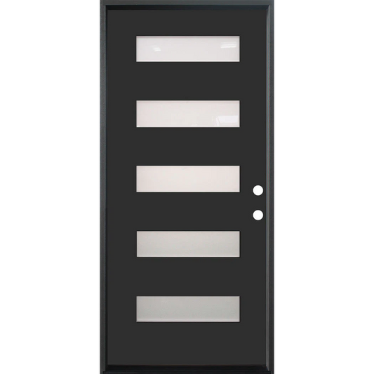3/0x6/8 Single Prehung Fiberglass Door in Black with 5 Lites