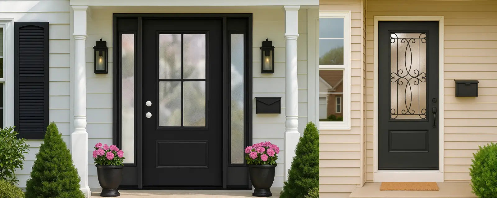 3/0x6/8 Fiberglass Door with Decorative Glass in Black