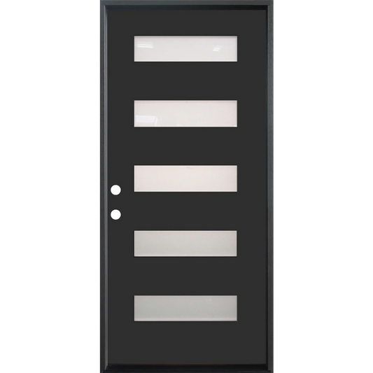 3/0x6/8 Single Prehung Fiberglass Door in Black with 5 Lites