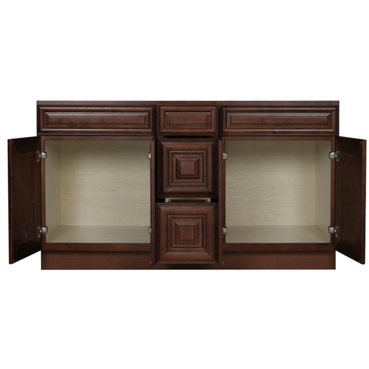 Glazed Chocolate Contempo Wood Vanity Double Sink and 3 Drawer Base | 60"