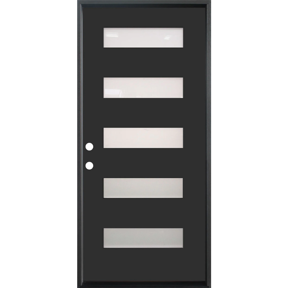 3/0x6/8 Single Prehung Fiberglass Door in Black with 5 Lites