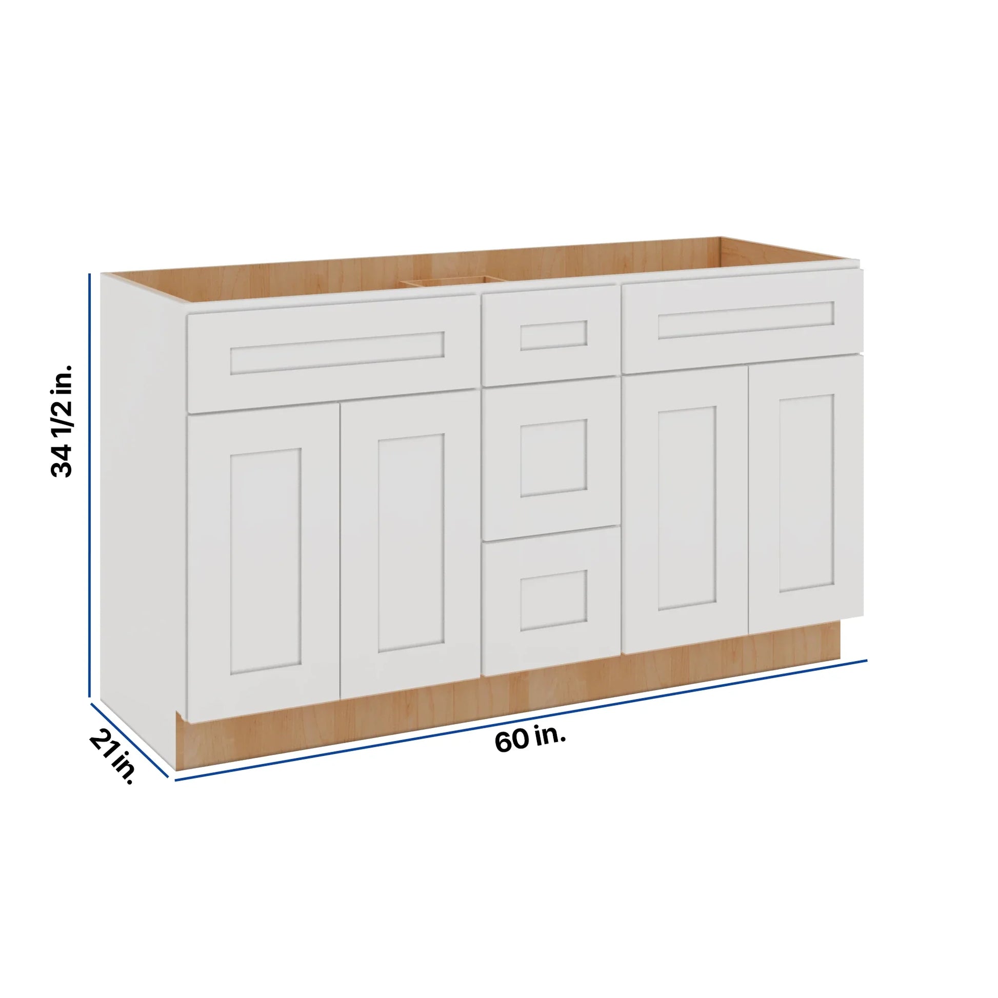 Modernform Cabinet White Shaker 60" W X 34 1/2" H X 21" D Combo Cabinet 4 Doors/3 Drawers/2 False Front
